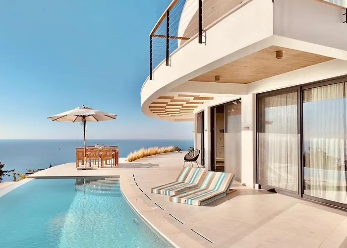 Vila Villa Egremni Hills je umístěna 3 km od Pláž Vassiliki, je 4-ložnicové ubytování s terasou. Balkón, pohovka a psací stůl jsou dostupné ve všech pokojích pro hosty ve vile Villa Egremni Hills.
